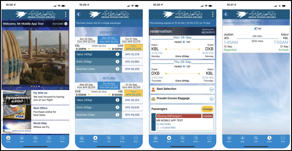 Ariana's mobile app lets you book and manage your travel from your mobile device. You can search for flights to find the lowest available fares, check flight status, and manage your booking.